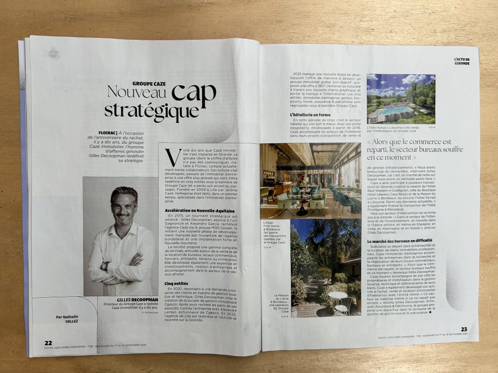 Depuis 2009, le Groupe Caze réunit six expertises complémentaires pour accompagner les professionnels de l’immobilier avec exigence, agilité et humanité. Présent en France et en Europe, il propose une approche globale, engagée et sur-mesure au service des entreprises et des territoires.
