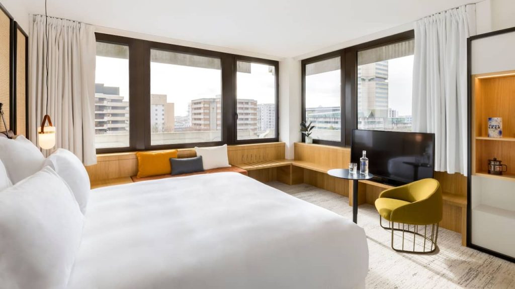 Réhabilitation et transformation d’un immeuble de bureaux en un hôtel **** de 137 chambres sous enseigne FIRST NAME, au cœur de BORDEAUX – MERIADECK. 1er établissement de la marque FIRST NAME by HYATT, un hôtel lifestyle au design contemporain. Lieu unique, concept novateur, pensé pour vivre et partager, illustrant parfaitement l’hôtellerie urbaine haut de gamme.